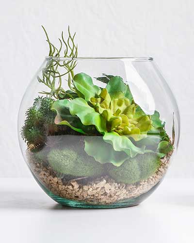 Our specialists will design and build the perfect terrarium for your home or business. We can make terrariums of all sizes and shapes, and we build each one specifically for you. Not only can we build it but we have plans to maintain your terrarium if you are a hands-off kind of person. Talk to us, we want to make you plant-happy!