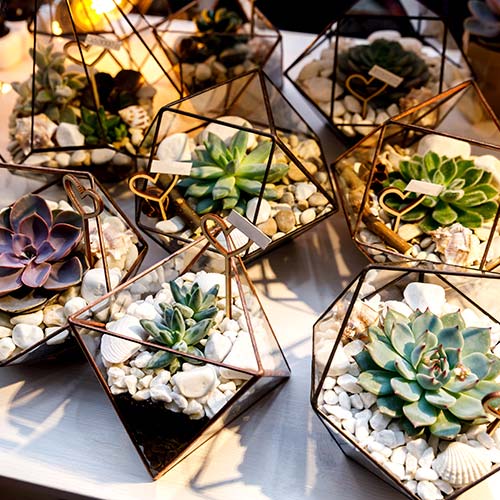 Make a statement and make it memorable. Our staff of terrarium specialists can assist in designing mini-gardens that will surprise and delight your guests. If you can dream it we can bring it to life. Talk to an event decor specialist to get started!
